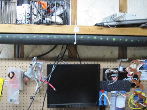El siguiente paso para mí fue montarlo en un estante encima de mi estación de trabajo. Para ello todo que hizo fue Perfore tres orificios en la parte inferior de la bandeja lo suficientemente grande como para caber mi zap las correas a través de. A continuación coloque el soporte con los orificios frente a me y asegurado en su lugar usando las correas.
