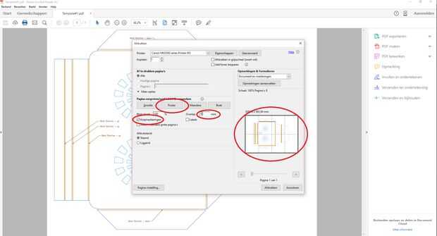 El pdf es más grande que una hoja A4 utilizando la función de "cartel" en Adobe Acrobat que son capaces de la plantilla repartidos varios trozos de papel. El ajuste se muestran en el cuadro.