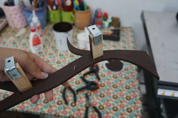 Cortamos 2 piezas de madera, del mismo tamaño, colocaremos las escuadras con un poco de pegamento epoxico y unas pijas pequeñas, prensamos y dejamos secar.