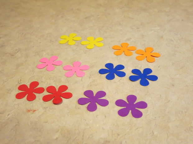 Usé el sacador de agujero de la flor para cortar dos flores de cada color.