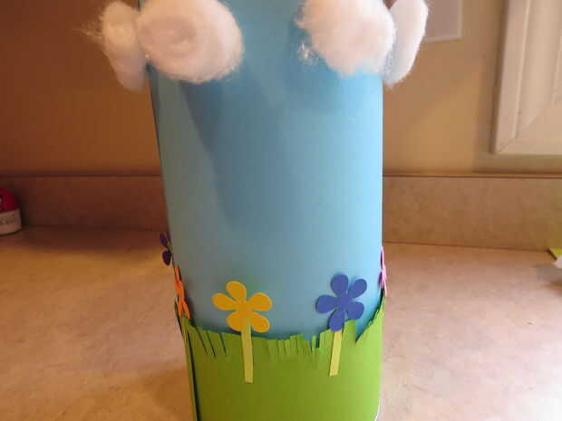 Me tomó algún papel verde claro y cortar tallos delgados para mis flores... luego pegar las flores en los tallos. Por último, simplemente pegué las flores y tiene tallo a la lata. Puso todo el poder.