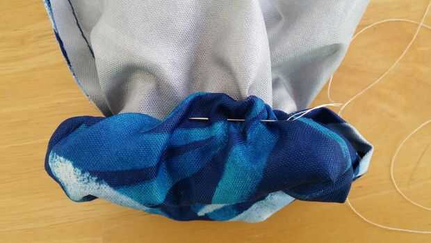 Vuelva la bolsa y colocar el pelo elástico aproximadamente 2 pulgadas desde el extremo. Los bordes de la tela alrededor del rodillo y coser en su lugar.