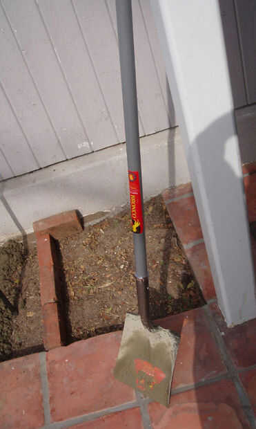 Entonces creé un borde alrededor del área a ser cementado con algunos ladrillos de repuesto que tenía por ahí. Esto asegurará de lados lisos, rectos cuando termines.