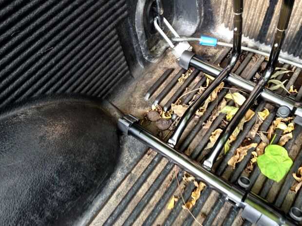 Reuní los 4 soportes para bici abofetearon en la cama de mi camión y parecía encajar perfecto. Unfortunalty una vez que una moto de tamaño completa se dio cuenta de que no tenía suficiente espacio hacia delante de la rueda y la bicicleta no caiga en la canasta.