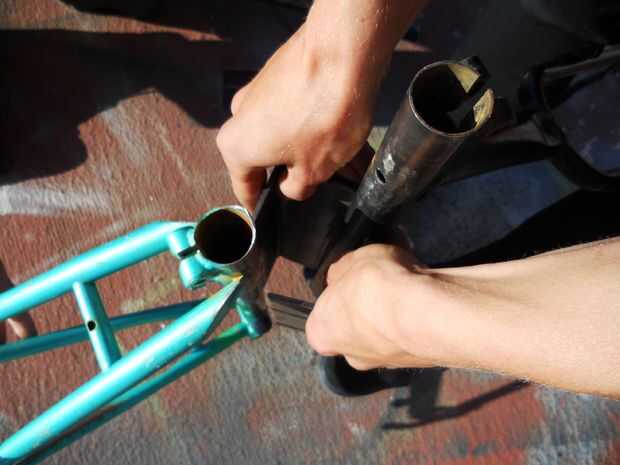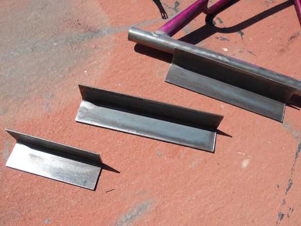 Encontrar dos longitud de ángulo de hierro que son no más largos que el tubo del asiento en cualquiera de sus marcos. El ángulo de hierro debe ser lo bastante grande como para caber alrededor de un cartel, sobre un reborde de dos pulgadas.