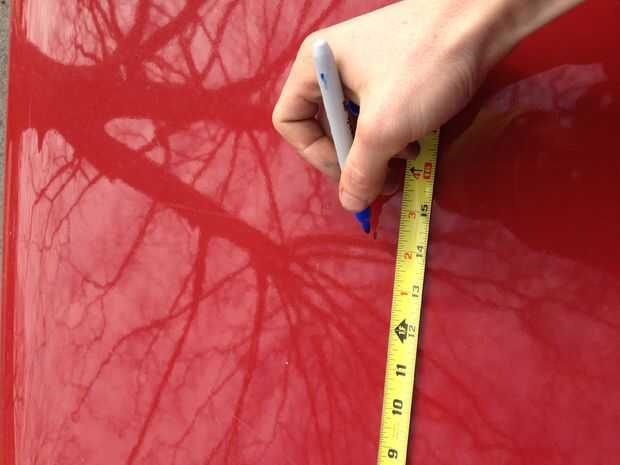 A continuación medir la tapa de su casquillo del carro tan precisamente como sea posible. Este es un paso potencialmente difícil debido a las curvas en los bordes de la tapa. Medí a los bordes de las ventanas laterales con una cinta métrica flexible para asegurarse de que tenía un punto de partida consistente en ambos lados.
