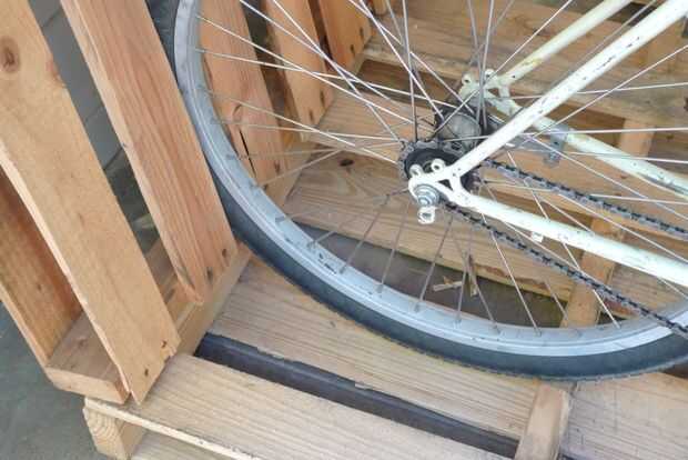 No pude encontrar un diseño de estante de bicicleta que me ha gustado de nuestro garaje fui ultra simple y he quedado contenta con el resultado. Tomó 20 minutos más dos 6 tableros que también fueron 2x6s y diez tableros de 23'', 2x6s. La mayoría de l