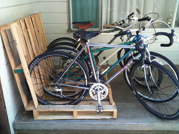 * Tenga en cuenta que esta idea de rack mío apareció por primera vez en Flickr (http://www.flickr.com/photos/lowtechatmo/5845643031/), donde fue descubierto por hacer revista bloggers (http://blog.makezine.com/2012/03/31/wood-pallet-bike-rack/) y Treehugger.com (http://www.treehugger.com/sustainable-product-design/simplest-diy-ever-build-bike-rack-pallets.html), entre muchos otros.