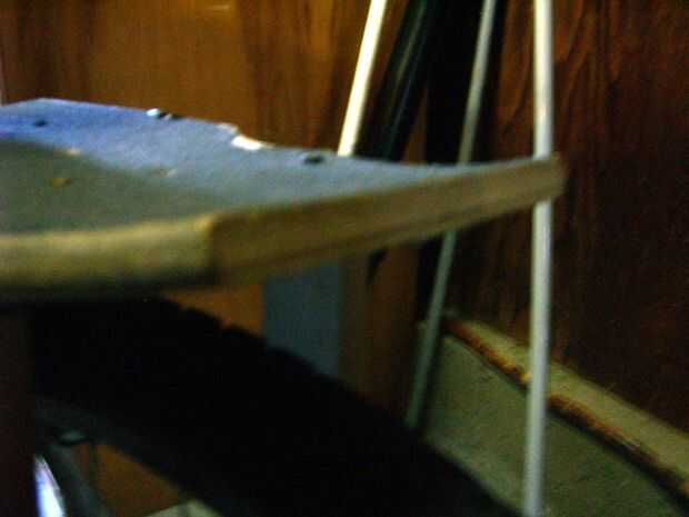 18/08/11 actualización:Aquí hay un video corto de mi estante de la bici: http://www.youtube.com/watch?v=3TSMnRLg9KYRompí mi regla de ir la ruta libre y adquirir una montura de horquilla real por $20 en mi tienda de bicicletas local unos meses atrás.