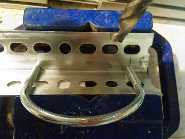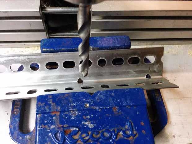 Tengo un taladro en mi garage y un vicio poco agradable usé. Sin embargo taladra el ángulo de acero, manténgalo apretado (no manos) así que cuando la broca de las capturas, no abra agujeros en sus manos. Es un poco peludo de perforación en el interior de forma de v.