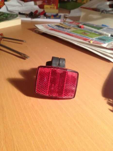 para este montaje se necesita: - un viejo reflector - estuche para tus alicates teléfono - destornilladores varios - (tal vez) - caliente pistola de pegamento y un protector de superficie tales como diario si trabaja dentro de como soy - posiblemente un pedazo si goma si el manillar es más estrecho que el reflector