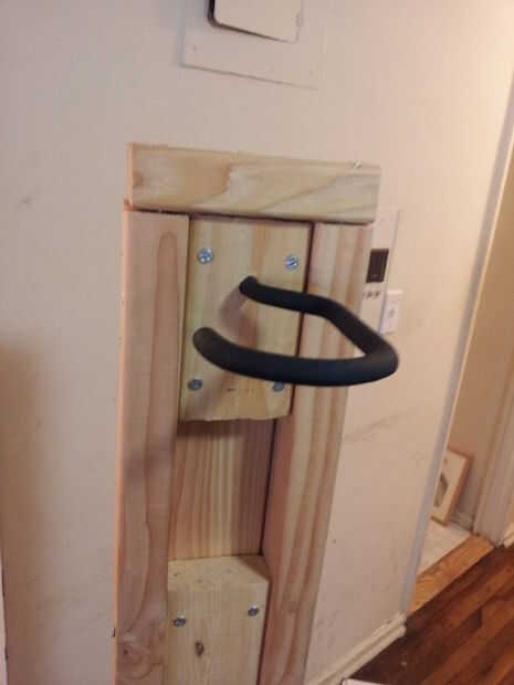 Coloque otro 3-6" pieza de madera para que sea centrado 12" por debajo del gancho.