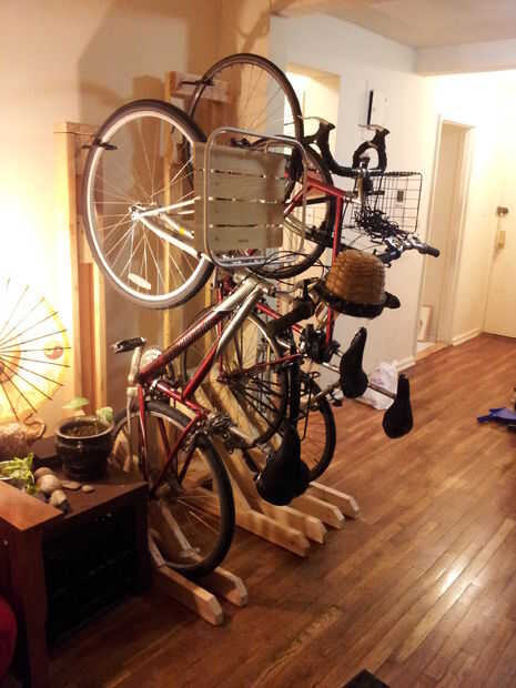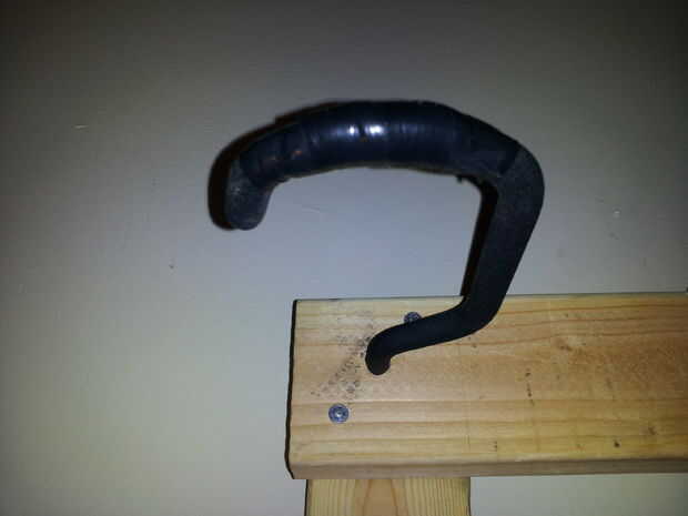 Edición: Lea este instructivo. Es importante para la discusión del espacio, así como para ver cómo lo hicieron los ganchos. Una de mis bicis frotó la capa de un gancho, así que había reparado con envoltura de manillar y cinta aislante.