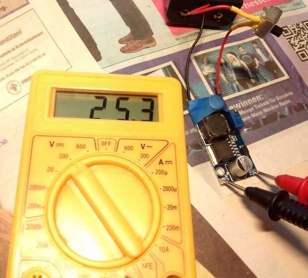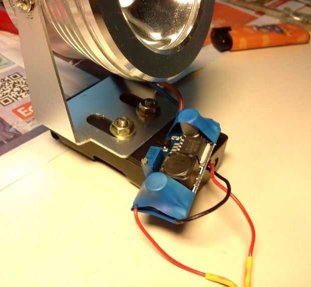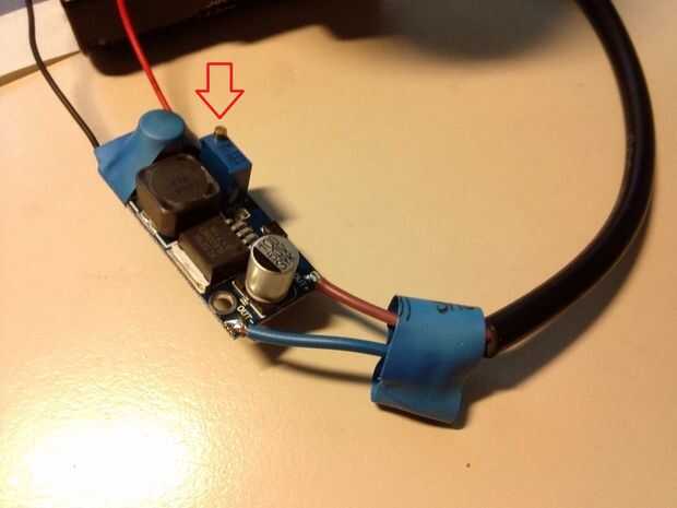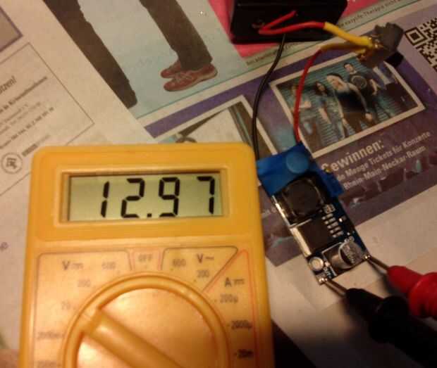 Utilice un destornillador para ajustar la tensión de salida a un pequeño tornillo que se puede encontrar en el módulo de Step-up (ver imagen). Ajustado a acerca de 13V para que en cualquier caso hay suficiente voltaje para alimentar el LED.