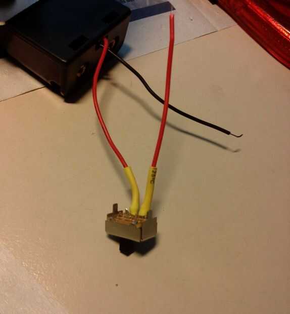 Soldadura el interruptor en el cable positivo de soporte de la batería (no importa cuál) y otro cable que luego conecta el interruptor y el elevador de tensión módulo. Antes de soldar correctamente puesto termoencogibles en los cables en orden a aislarlos.