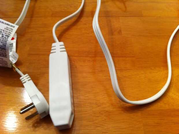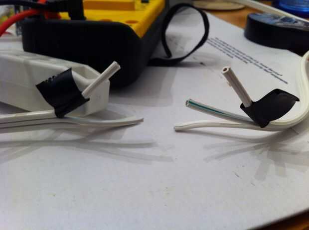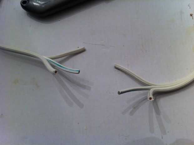 Para un cable plano como el mío, también tienes que dividir el plástico aislante entre los conductores de tres en cada lado, porque cada conductor necesita ser cableado por separado. Para un cable de extensión redonda, tienes abierta y retire la envoltura externa.