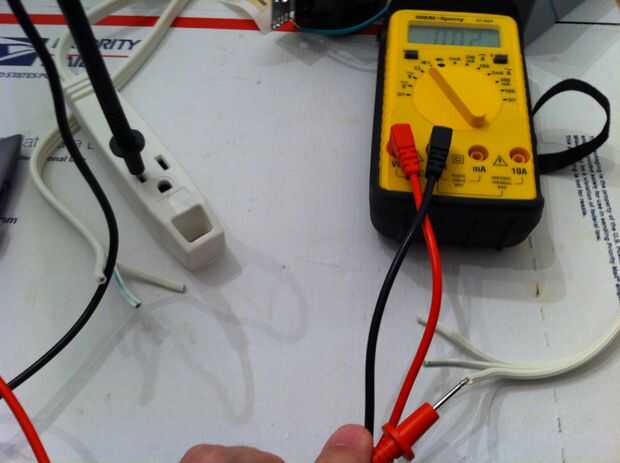 Por seguridad, es importante averiguar que cable es caliente y que es neutral. Cambiando el cable vivo y el neutro entre enchufe y tomacorriente, o cableado del interruptor al cable neutro, podría plantear peligros de choques eléctricos! Utilice un probador de continuidad para determinar que cable está conectado eléctricamente a la ranura del cable de "izquierda", más amplia. Este es el "neutro". He marcado ambos lados del alambre neutro con cinta aislante, por lo que no accidentalmente mezclarlas con los extremos del cable "caliente". No omitir este paso si quieres conocer el inspector de incendios agradable.