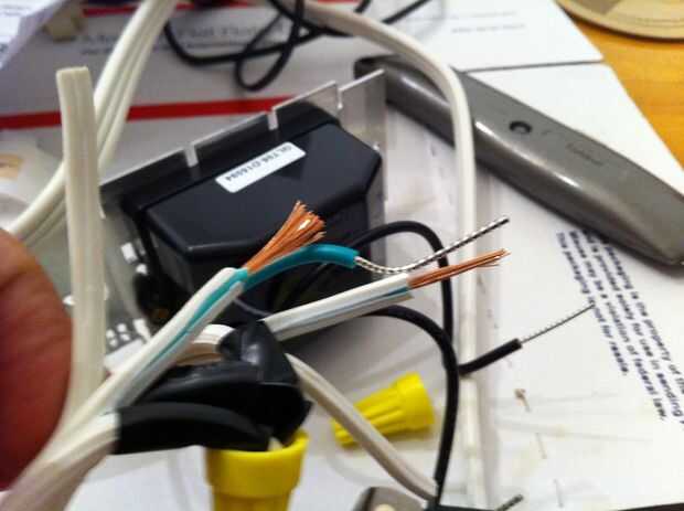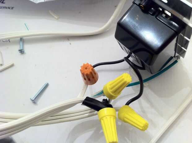 Ahora tira de los extremos de la cuerda restante extremos de alambre (caliente hot) y gire cada uno junto con uno de los cables negros del atenuador interruptor de control. Añadir un tapón de alambre en cada uno y como antes, asegúrese de que no esté cobre expuesto cuando termines.