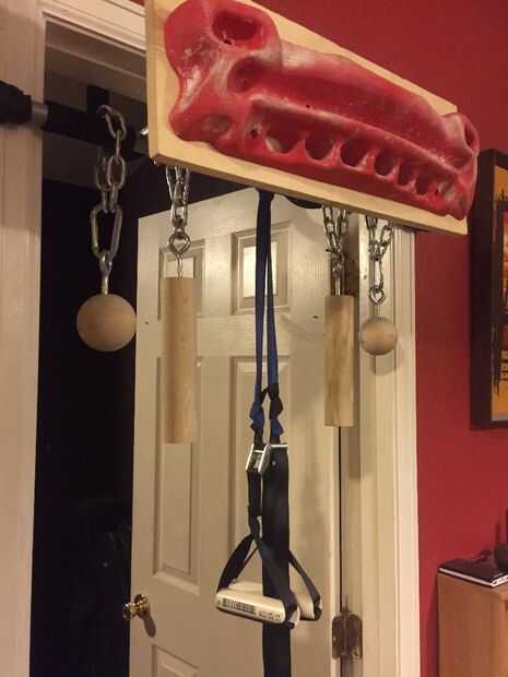 Ahora entonces! Esto es un plan sencillo y barato para el montaje de un hangboard escalada en comercialmente disponible ($30) gimnasia del hierro montado en puerta pullup bar a la el sistema de pizarra en blanco. El costo de los materiales debe ejecutar alrededor de $15-20 y el hangboard puede servir como base para una estación de entrenamiento más extensiva que aún se rompe y los paquetes en una bolsa de gimnasio. Modificar según sea necesario para adaptarse a su hangboard.