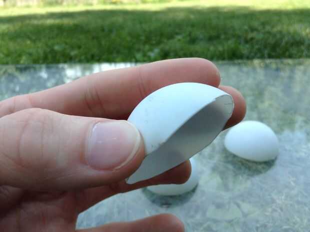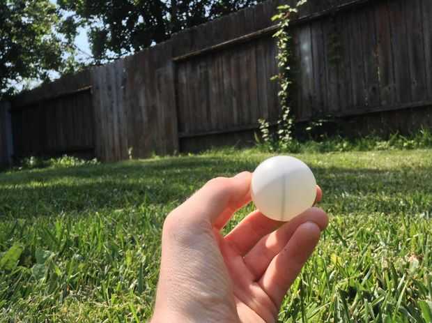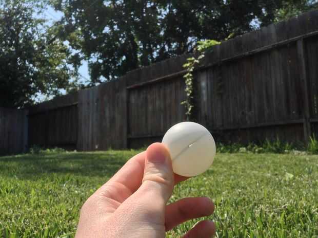 1) si se mantiene encima de la pelota de ping-pong a la luz, debería ver una sombra de la línea que describe la circunferencia entera pic 1. Una vez que identifique a la sombra, usted podrá encontrar la línea incluso si no se tienen a la luz; será una tenue línea blanca. Vamos a utilizar esta línea como guía mientras cortamos.
