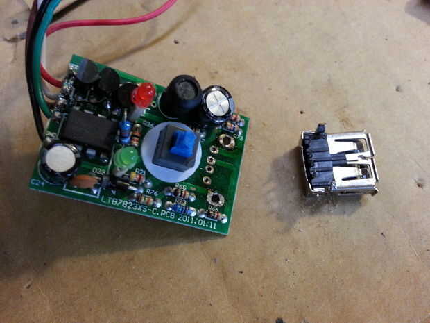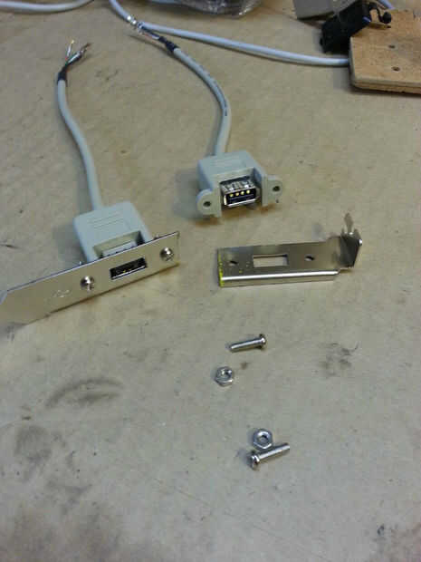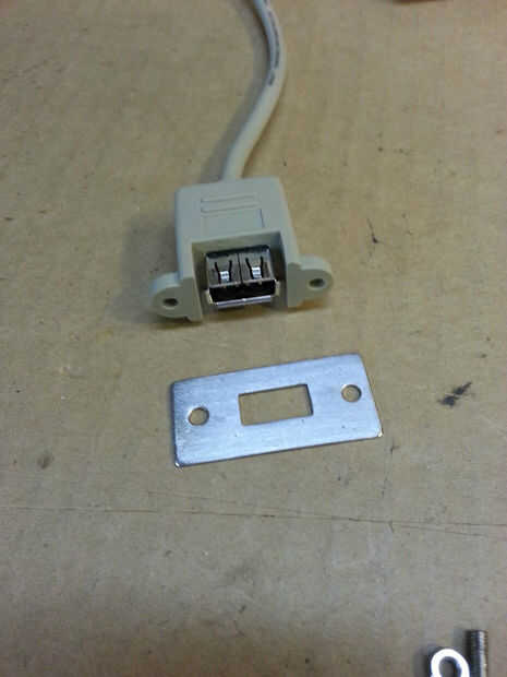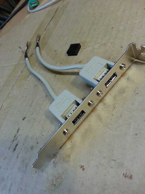Desoldar el conector USB de la placa de subconjunto que contiene el interruptor de encendido. Extienden por soldar un conector de cable USB. Estos conectores USB pueden encontrarse en la parte posterior del PC antiguo. Ocupan una ranura de tarjeta. Estos conectores son grandes porque se han integrado las lengüetas de montaje. Montaje de un conector USB raw a un panel es difícil.