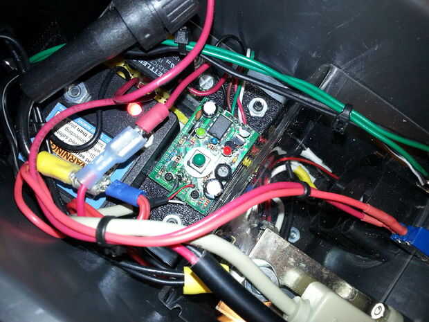 Con más engarzado conectores cable del portafusibles a la toma de accesorios 12V. Instale la placa superior y montar el interruptor de alimentación de inversor sub Junta, módulo de relé placa y batería cargador. Siguiendo el diagrama de cables, conectar y soldar el circuito restante.