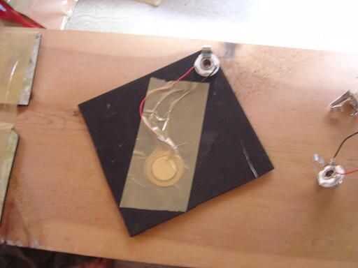 ahora colocas el piezo donde usted quiere oro lado hacia abajo y cinta adhesiva. Estoy seguro que podría pegar o algo elegante pero lo que sea. Sé que esto funciona para que apoyará.