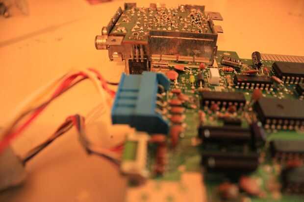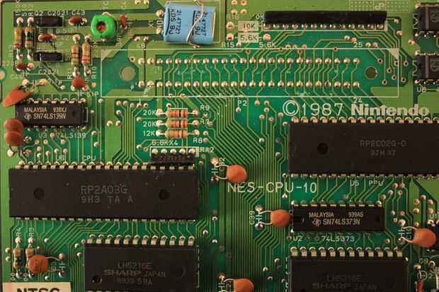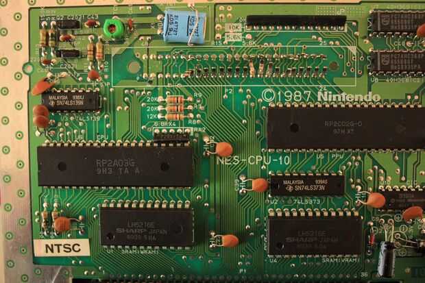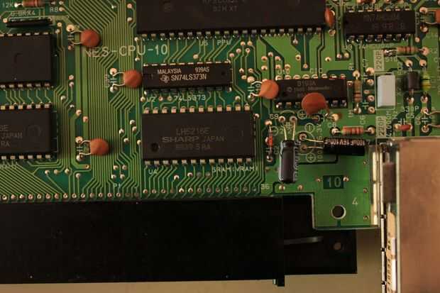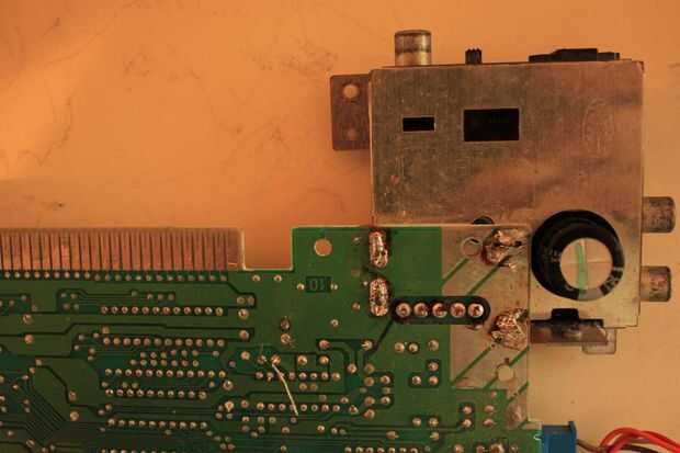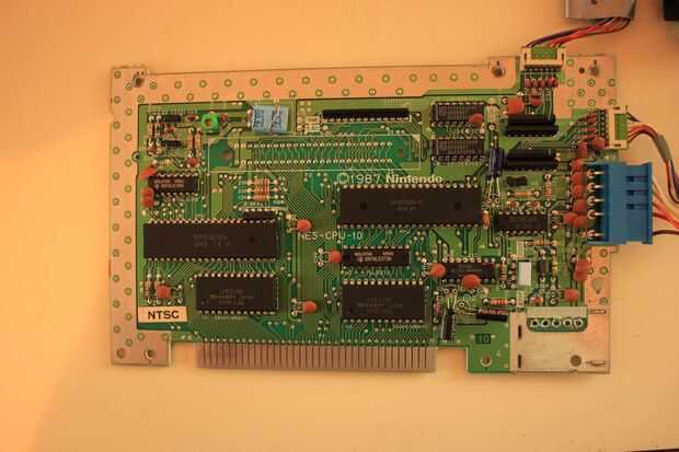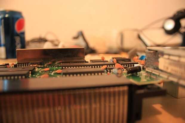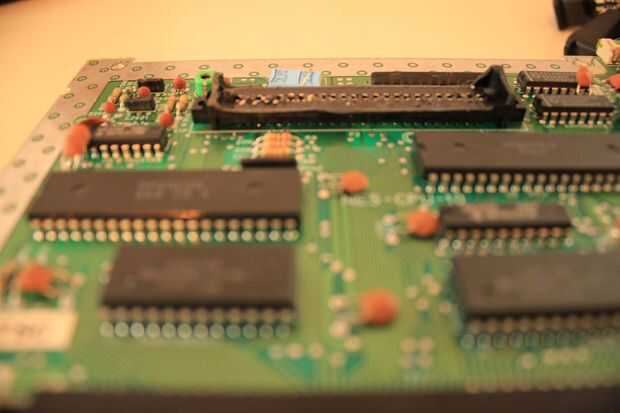 Ahora es momento de comenzar a destruir la placa base y reconstruir para que sea más pequeño y más delgado. Para más consolas simplemente doblar y doblar sobre condensadores y resistencias para hacerla un poco más delgado, pero en algunos casos como el de la NES debe recurrir a la destrucción física de la placa base y componentes.