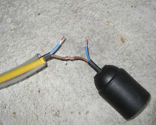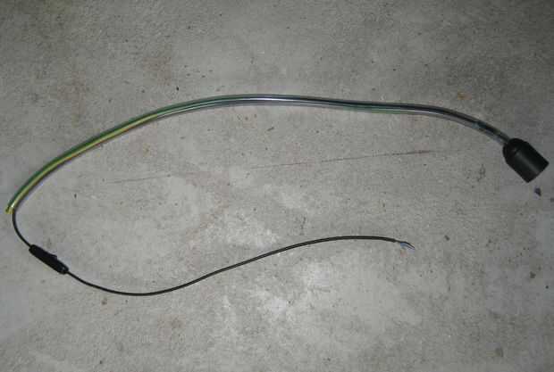 Poner el cable de masa y el cable eléctrico a través del tubo plástico. Conectar el portalámparas al cable eléctrico con soldadura. Utilice cinta aisladora para asegurar las conexiones.