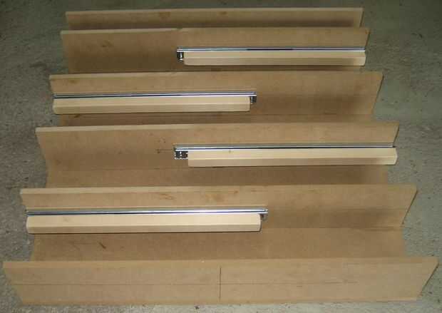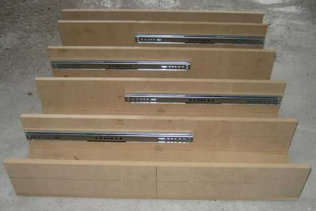 Tornillo de los planeadores del cajón en las piezas con los orificios del cable. La primera a la izquierda, otro a la derecha, luego otra vez a la izquierda y la última a la derecha.