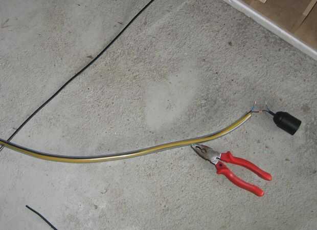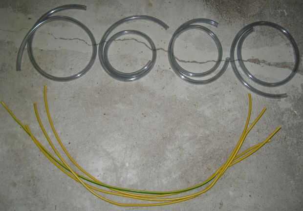 Ahora necesitas cuatro tubos de plástico de 70 cm, 4 cables de tierra de 70 cm, cables eléctricos con interruptor y cuatro zócalos de lámpara.