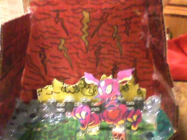 Esto se hace de parte de una vieja caja de cartón, termofusion y legos- y un montón de colores.  Su el interior del estómago de Bowser, con la bruja que tragado.
