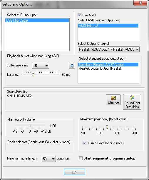 2. ajustar la latencia hacia abajo si hay un desfase notable entre pulso una tecla y escuchar la nota.