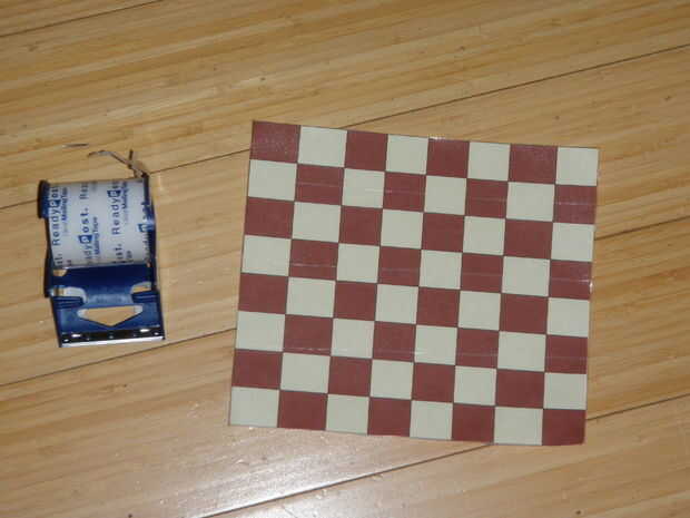 En este paso, se lamina el tablero de ajedrez.  Usaremos cinta de embalaje.  El frente de la Junta de la cinta y luego hacerlo en el reverso.  Cortar todas las cintas exceso colgando del tablero.