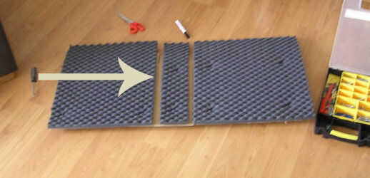 poner la caja en el suelo. Poner la espuma en la parte superior y compruebe si todo está cubierto. (Tenía 1 M, que era mucho para mi caja 2 x 40 x 40 cm y 15 x 40)
