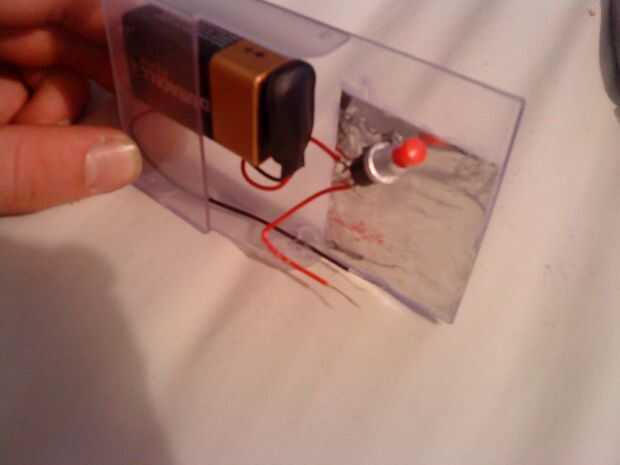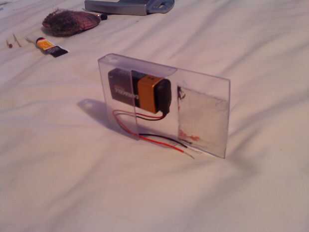 2. el interruptor debe también ser soldadas sobre a medio camino a lo largo de uno de los cables de la batería y luego pegada en lugar hacia el exterior.