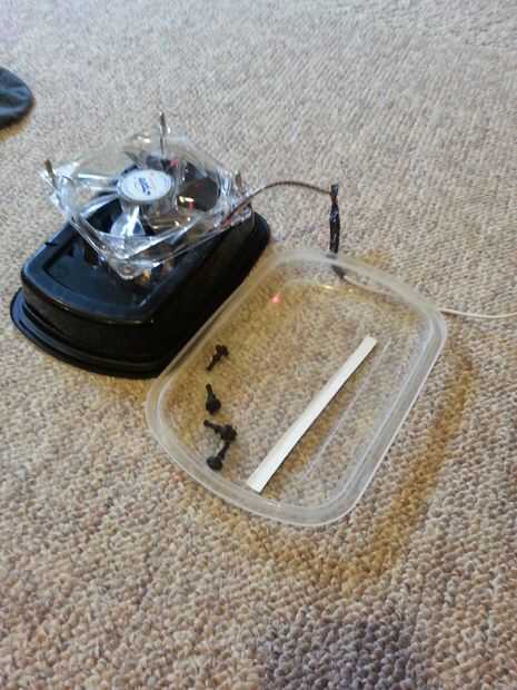 Había habitación extra para una trampa de partículas puede tanto ayudar a coger material adicional y dar retroalimentación visual a la efectividad / sello del filtro. La trampa está hecha de una tarjeta doblada, que servirá como base para algunos jalea de petróleo. (para aplicarse cuando se reemplace el material de filtro) Vi así cuando... rollo 20 memoria - conocimiento arcano! Si la memoria sirve, fue presentado como una manera de tho Mostrar la diferencia en la calidad del aire de lugares para fumadores y sin. Confió en el flujo de aire natural. Vamos a llevarlo al siguiente nivel por el aire que sopla a través de las partículas de la jalea de petróleo. Opté por colocar el lado opaco de la envolvente hasta mantener el sol de la tarjeta. Yo estaba emocionado configurarlo en mi ventana para ver qué tan bien funciona este gadget.