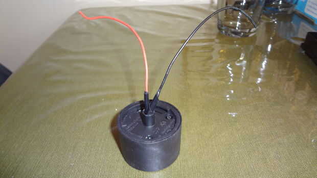 Después de que la soldadura de los cables, alimentación a través del agujero en la tapa y tornillo abajo.