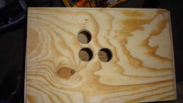 Usé uno de los paneles como guía para dibujar los círculos a taladrar.