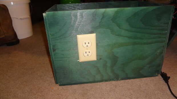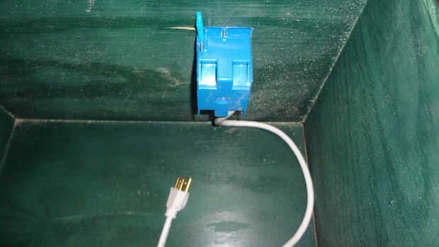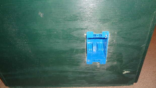 I cortar un agujero y poner una caja en el agujero y por cable a la salida (con la ayuda de los chicos eléctricos de Home Depot y mi suegro) con el extremo cortado de un cable de extensión.  El extremo macho del cable de extensión va a ser enchufado en el inversor.