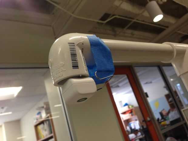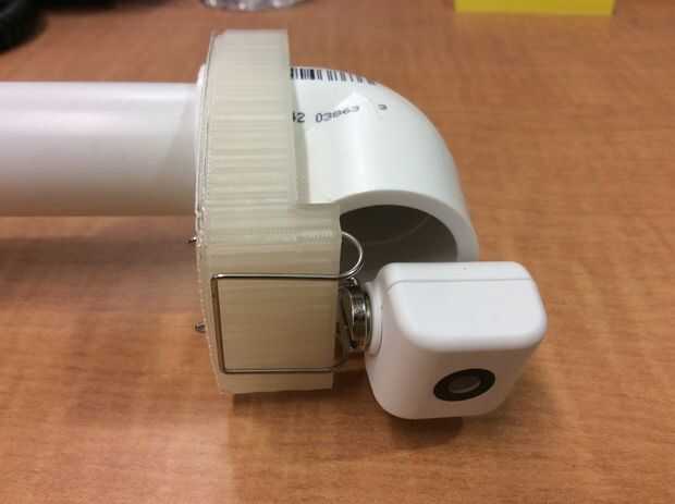 Enchufe miniUSB en parte trasera de iCubie y quitar holgura del cable del USB para que el iCubie se basa lo más cerca posible a la apertura del codo. ICubie seguro con cinta adhesiva el codo y el clip.
