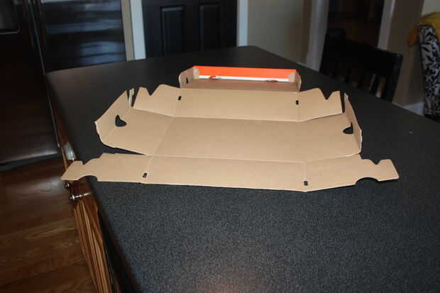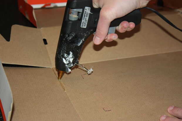 En primer lugar, desplegar su caja de zapatos. Después de que su caja de zapatos está desplegado, pegar los paneles interiores detrás en los bordes arrugados. Asegúrese de que su caja es todavía capaz doblar para arriba en su forma original.
