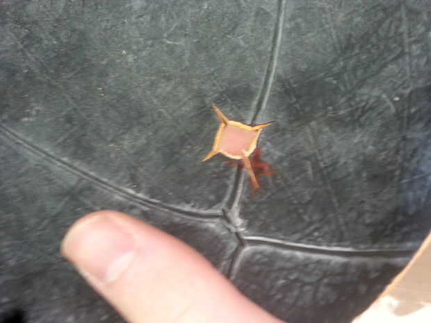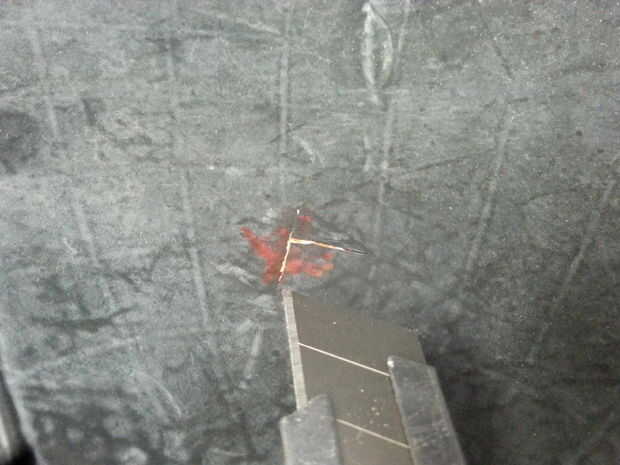 Utilice su cortador de caja para hacer un agujero en la bola. Asegúrese de que está en el lugar correcto y en el centro del agujero hizo en su costilla de refuerzo.