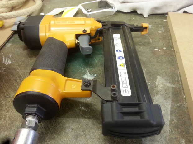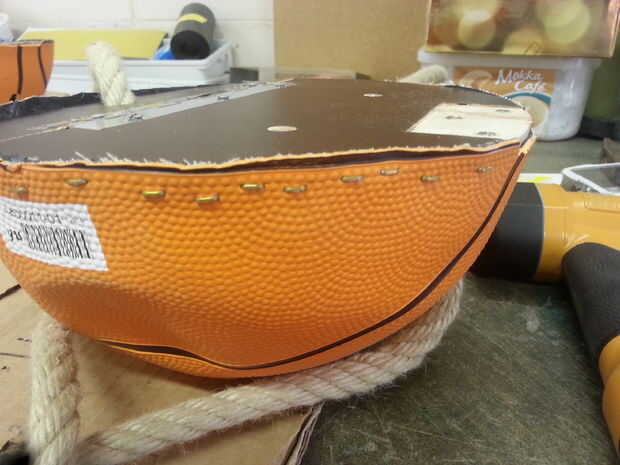 Usar su máquina de grapas para conectar las 2 tablas a la bola.