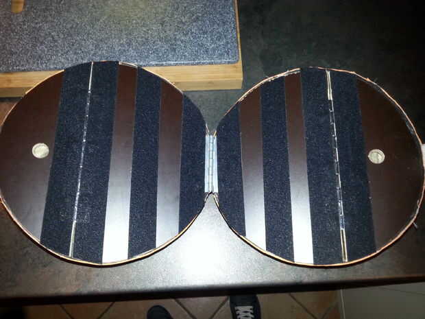 Utilicé unas tiras de velcro hembra y pone sobre las bisagras te. Así es un poco más seguro y más difíciles de su deslizamiento de la tabla cuando se balanceo.