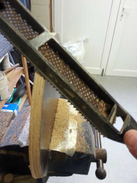 Utilice una lima de madera para alrededor de la madera. Esto hace más fácil caber en la bola.