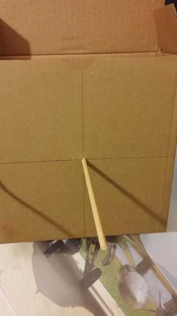 Todo lo que tienes que hacer ahora, es el carrete y pone en la caja. Ahora, levántela sólo un poco más, así que los agujeros de las cajas de fósforo será la misma altura que los de la caja sí mismo. Suavemente empuje la brocheta a través de los agujeros y trate de no dañar nada. Debe deslizarse justo fuera del otro lado.