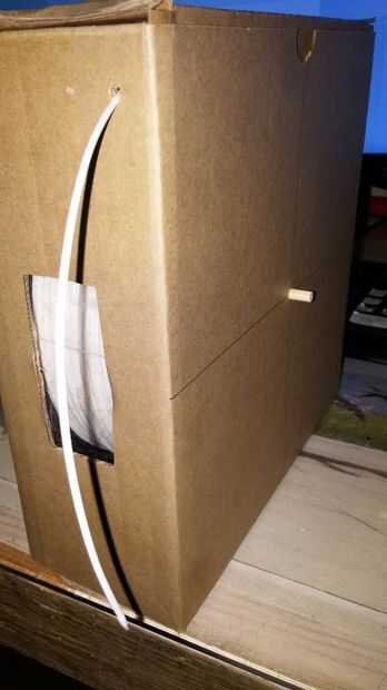 También puede hacer un pequeño hueco en cualquier lugar de la caja y extraiga el filamento de allí. Puedes también dejar abierta la caja y tirar del filamento de la parte superior.