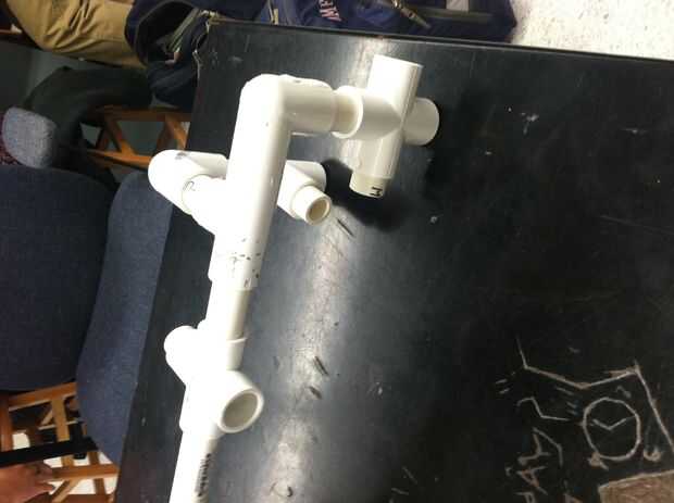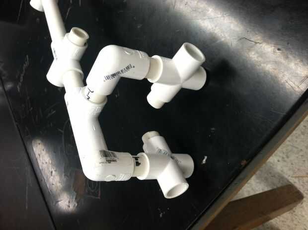 Tomar tus esquinas y sujete en el orificio abierto del conector T a los extremos de la base del soporte del carrete. Asegúrese de que ellos se unen totalmente y llevará a cabo el peso de las bobinas. Si usted siente que podrían no ser lo suficientemente fuertes, puede reforzar con pegamento caliente.