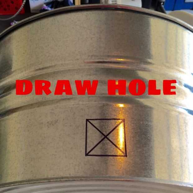 Medir el extremo hembra de la manguera (el extremo que en la llave de los tornillos). Decida dónde desea el orificio de la manguera y dibujar un cuadrado que es ligeramente más grande que la final femenino. Mi manguera tiene un extremo hembra de 1.5" para que mi agujero del cubo se mide en 2". Utilicé un cuadrado de simplicidad pero que podría hacer un círculo, Pentágono, forma a mano alzada o cualquier forma que te hace feliz.